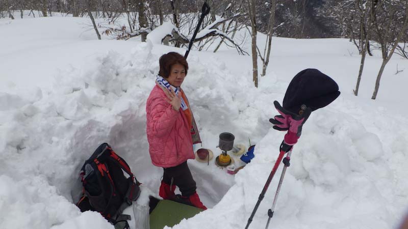 今年の1月にも、”途中逃走?” 事件があり、その申告 (もうダメだ!) は少々遠慮がちであった。それは、私があまり面白くない顔をしていたからに他ならない。「せめて4キロ地点まで!」 「それがダメなら思案山まで!」 となったが、思案山までも届かなかった。1400mくらいで穴を掘った。「山ノ神」待機場所である。