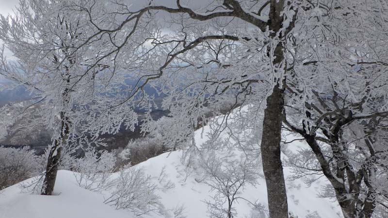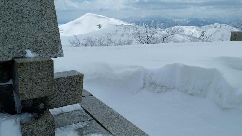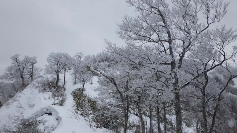昨日の天蓋山の帰り道、”塩の千本桜” を見に寄った。初めてだったが素晴らしかった。しかし、今日の山頂近くのブナの樹氷も、それに劣らないくらいに素晴らしかった。桜のように見えるのだから不思議なものだ。陽があたっておれば、文句なくであった。そして、山頂に立った。「百の山頂に百の喜び有り」 まさしくその通りである。62回目の金剛堂山であったが、一つ一つの想い出がある。