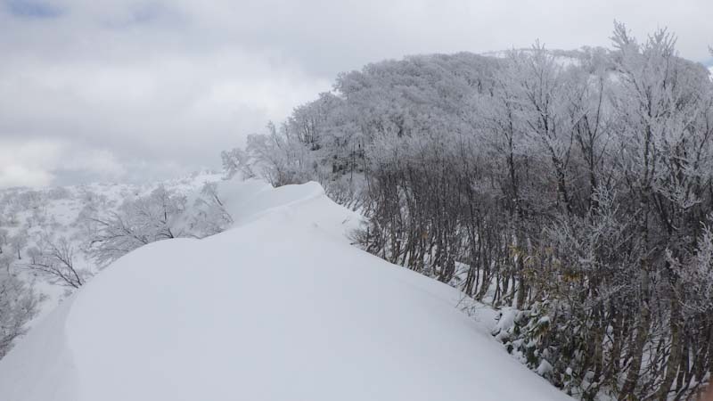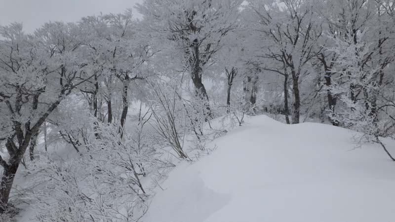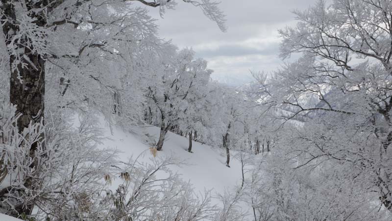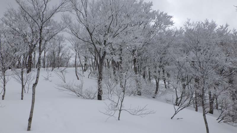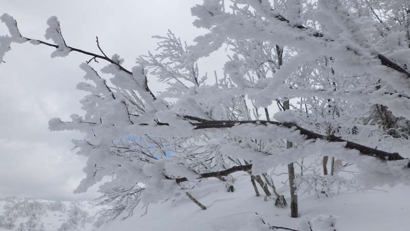 それから、1時間半程の時間をもらった。(午後0時45分頃であった。) 前夜の降雪や、きっと風もあったのだろうか、トレースが全部消えていた。そして、樹氷である。心が躍った。しかし、写真を撮るには陽が欲しかった。ちょっぴり顔を出したりするのであるが、なかなか持続してくれなかった。