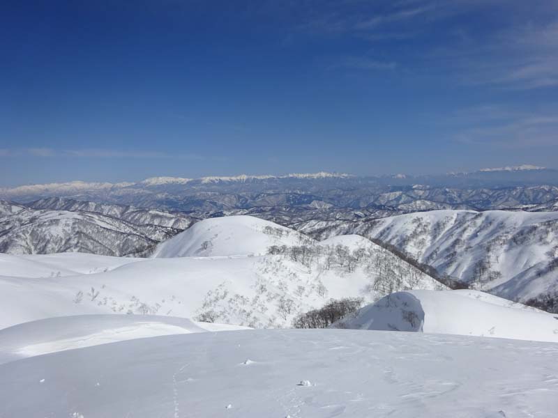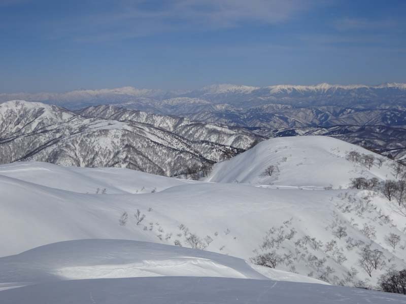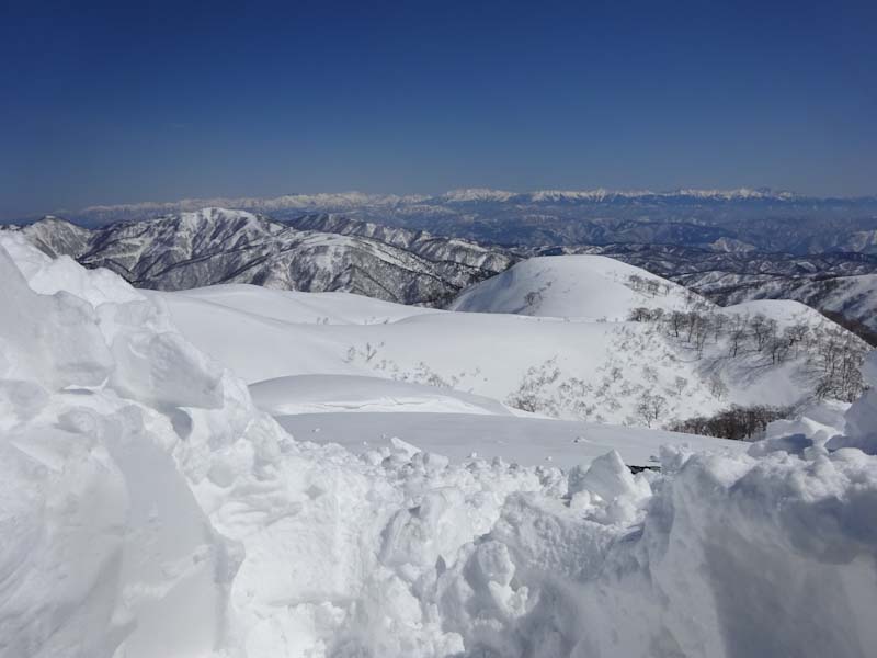 | お天気が良く北アの山々が望めた。 | 今年の雪庇は小さく思えた。 |