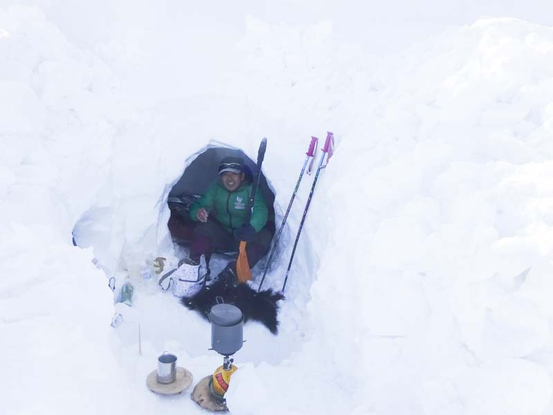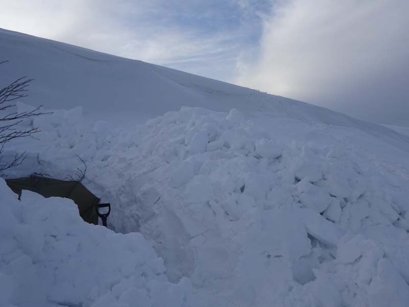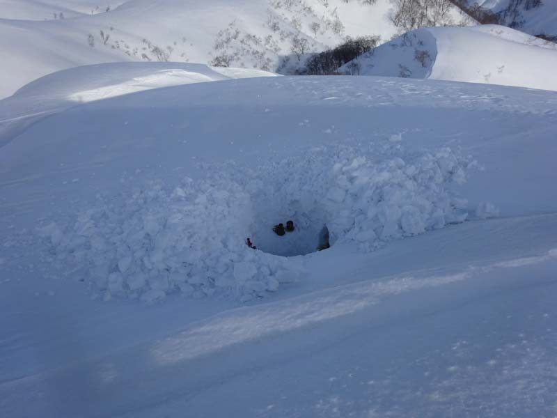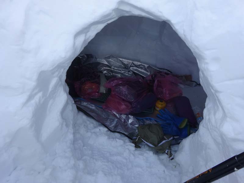 | 雪庇から少し離れた所で雪洞を掘っている。 | 絶景としか言いようがない |