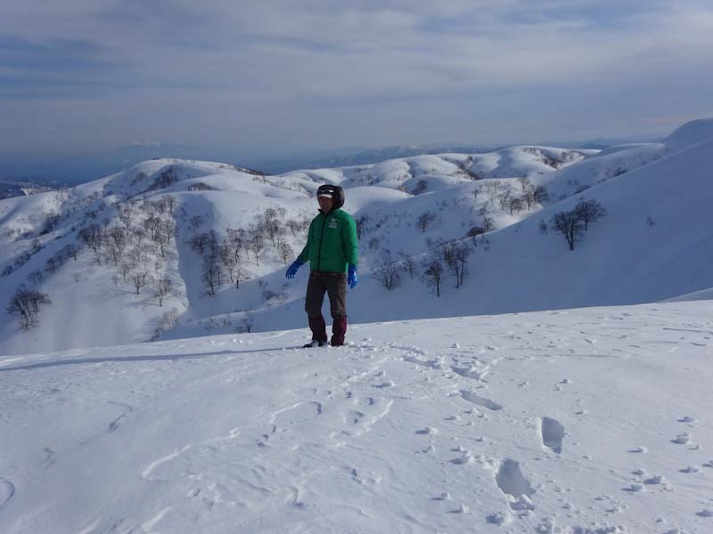 | 片折岳にてグルートさんに撮ってもらう。 | 4キロ地点でこれから行く山頂方面を望む。 |