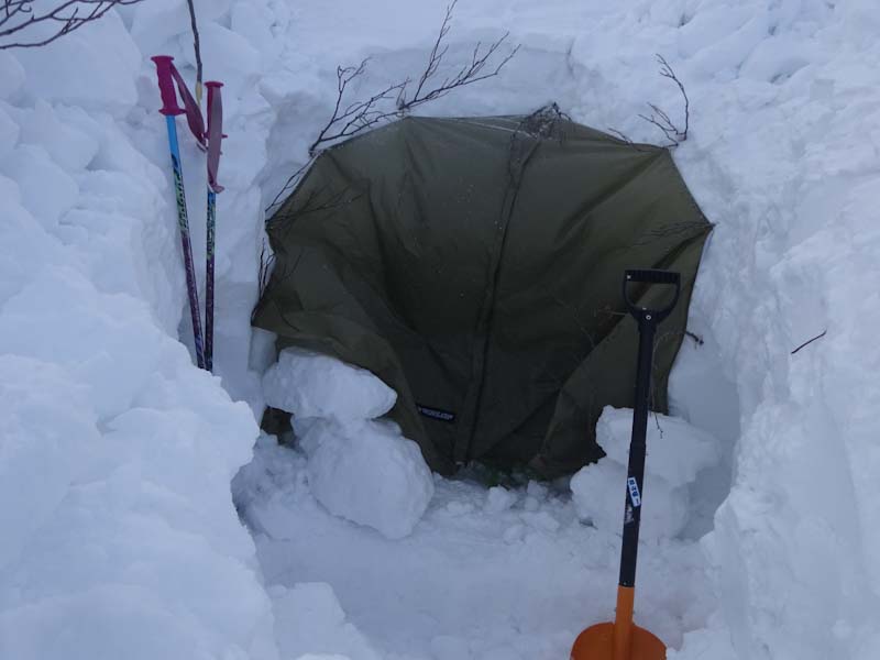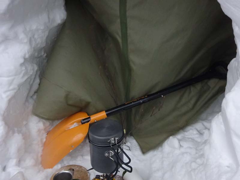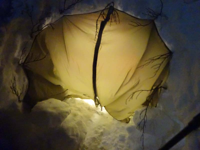 | 出入りがしやすくなるようタープの一部を使いました。 | 雪洞を横下から撮りました。 |