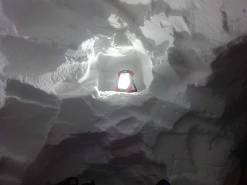 | ランタン(充電)は、12時間使っても全然大丈夫でした | この日は、風が強く隙間から雪が舞い込みました。 |