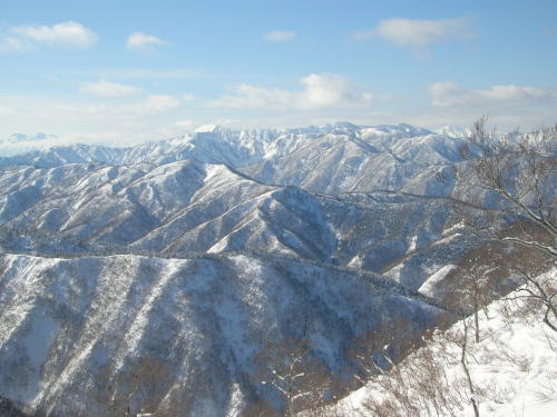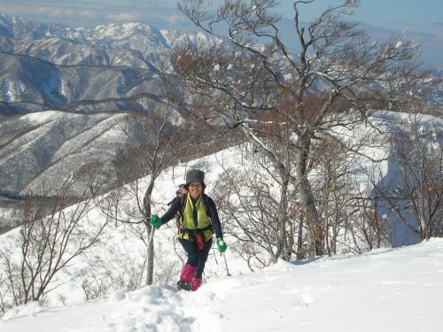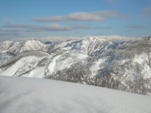 | 三辻ヶ山から人形山を中心に五箇山の山並み | 「もう少し、先へ行こうよ」と絶好調!の「山ノ神」 |