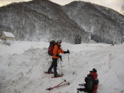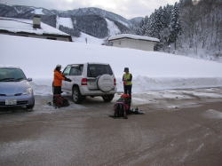 | 暖冬でも利賀には雪がある (スノーバレー利賀スキー場駐車場) |
