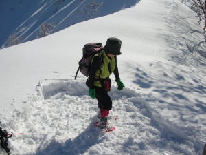 | 栃谷から1キロ地点から、スキー場 からと思われるトレースがあった |