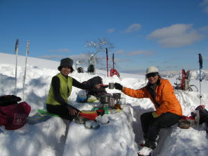 | 気持ちの良い稜線漫歩である | 今日は、栃谷から4キロの地点でも大満足! 後の時間は、食事や写真撮影に |
