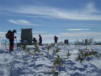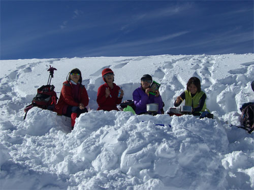 圧倒された「山ノ神」は、唯一人、ビールをチビリチビリ・・・、私は、その様を、カメラに納めるに徹していた。ぜんざい・コーヒー続く最終メニューを終えて、再び山頂に立ち、「こんな良き所とは、知らなかった。もっと、雪量がある時に、また来てみたい。」 と魔神達の言葉が印象的だった。