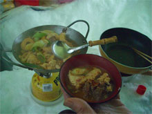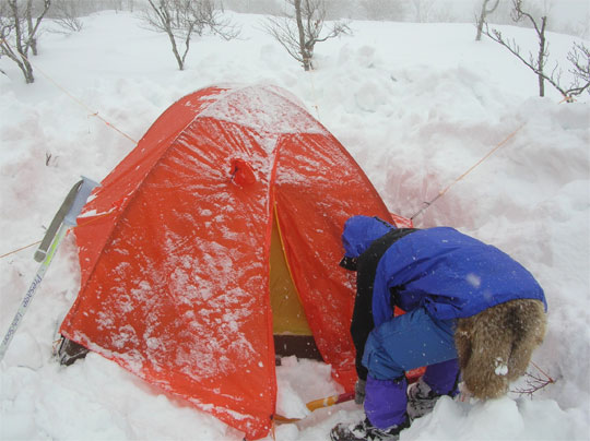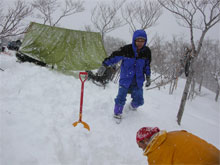 | 荷を纏めてからテン場つくり。 | テント場の地ならし。 | 食事処の構築に入る。 |