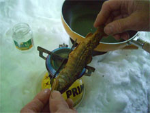 | イワナを焼いて・・ | イワナの骨酒 | ふぐのヒレ酒 |