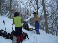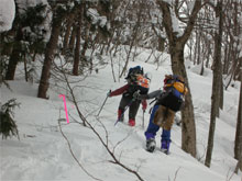 | スキー場に駐車して・・ | 駐車場横から取り付く。 | 最初は急登! |
