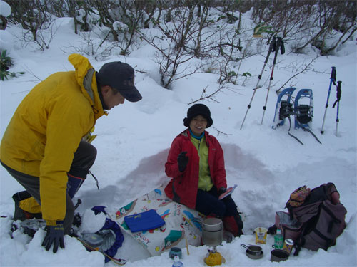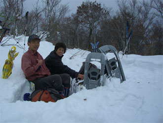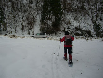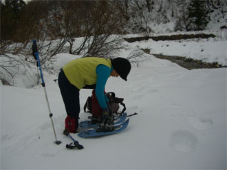 すぐにスノーシューを装着!