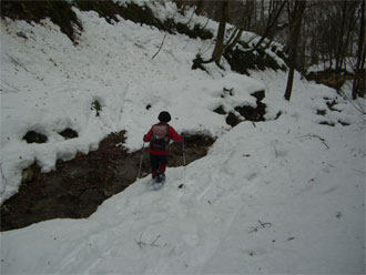 沢を渡る。