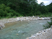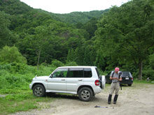 | 東俣に向かって・・・ | やっと、林道に出る。(支点) | 東俣登山口に着く。そして、 長い林道歩きが待っていた。 |