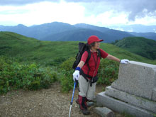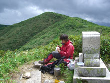 | 金剛堂山頂上(前金剛) | 山頂からの風衝草原を行く。 | 「疲れた! お腹空いた!」の表情! |