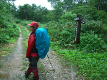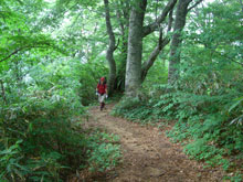 | 2キロ地点。 | ブナの原生林を行く。 | 3キロ地点。 |