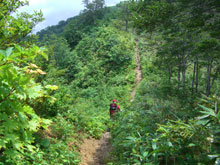 | 一度下がって登り返す。 | 4キロ地点。 | 山頂への最後の登り。 |
