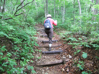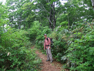 しかし、2時間も掛かった2キロ地点で、「山ノ神」の方から、リタイヤの宣言をした。そして、「私だけに、山頂まで行って来い。」 と言ったのである。山頂まで1時間、降りは1時間半、山頂の休憩30分を入れても、午後1時までに登山口に戻る事が出来るだろうとまで言うのであるから、飲料水と傘、そして、クマよけの鈴を渡して、一人で山頂に向かった。