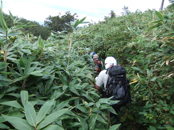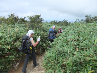 草木が伸び、登山道に覆い被さっている所もあった。