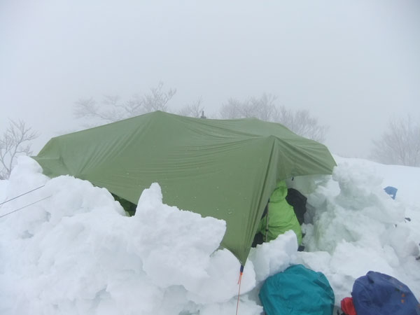 | 栃谷から4キロ地点で、シェルターを造り団欒? |