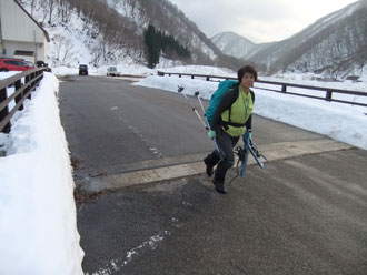 高岡5:15=庄川道の駅(5:55~6:00)=スノーバレー利賀(6:45~7:05)=栃谷登山口(7:40~45)=1キロ地点(8:35~45)=一服金剛(10:20~25)=4キロ地点(11:30~13:30)=一服金剛(14:15~25)=分岐15:10=スノーバレー利賀(15:50~16:05)=高岡