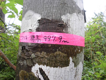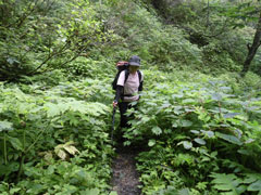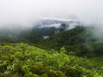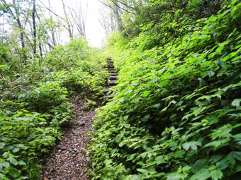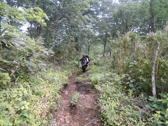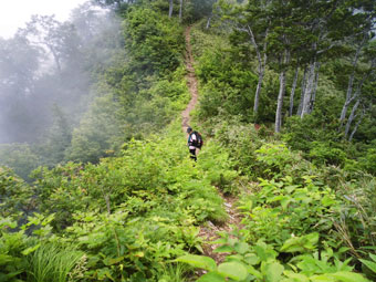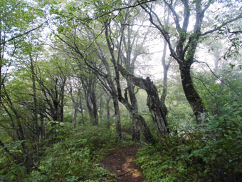 | 登山口から2キロ地点。 | ブナの原生林を行く。 |