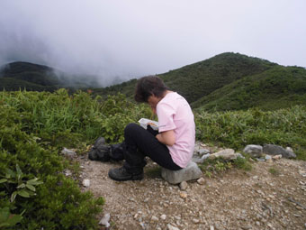 | 山頂からは風衝草原が広がる。 | 私のお気に入りの所でもある。 |