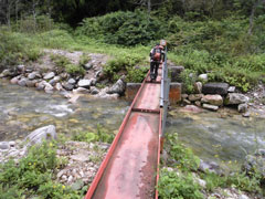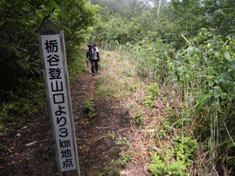 | 栃谷登山口から・・・ | 百瀬川を渡る。 | 登り始めは、雑草に覆われていた。 |