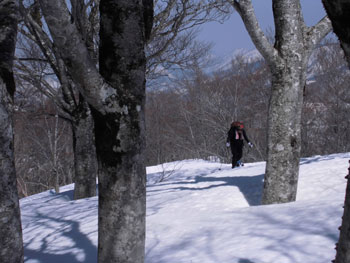 ブナ林の間を行く。 |