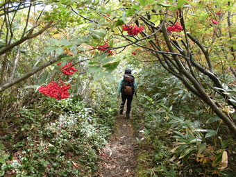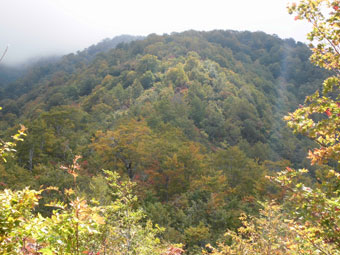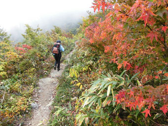 10/6 連休2日目は、金剛堂山としたが、今日も予報の割りには、山頂付近はガスの中であった。紅葉もくすんでいて、見応えがなかった。それでも、山頂に1時間ばかりいたであろうか、五箇山は、県東部の山々と比べれば、かなり余裕がある。