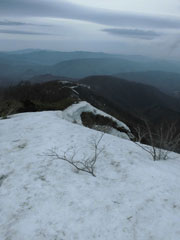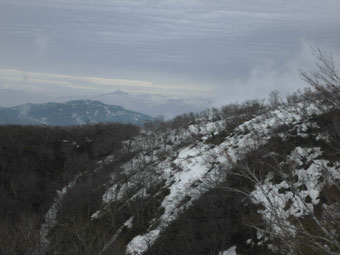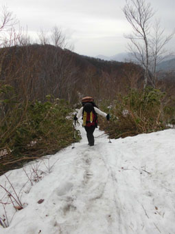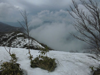 3キロ地点で、快適に降りて来られる人を発見。近付くと、俵先輩であった。昨年2月に、高落場山でお目に掛かって以来である。あの時も、私の予定に合わせて来て下さったようであるが、「今日も、何となく来るような気がした。」 と言っておられた。有り難い事である。如何せん、私達は、家庭に事情から、特別の日でない限り、どうしても、スタートが遅いだけに、このような出会しかないのである。