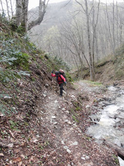 | 沢を渡る前に崩落した所があった。 |