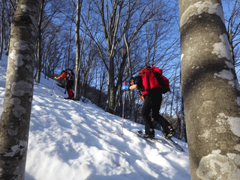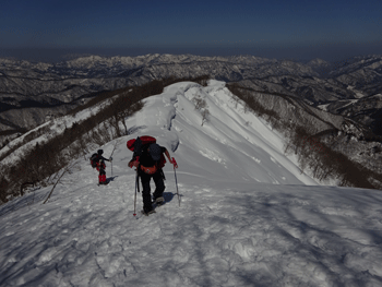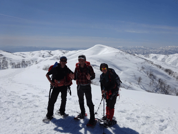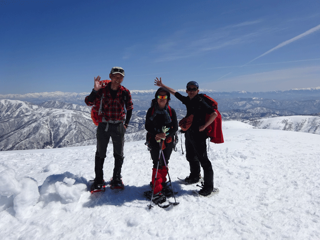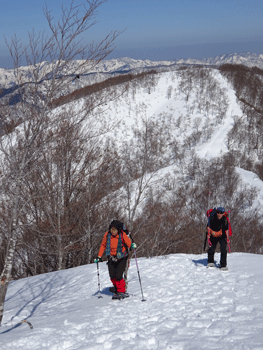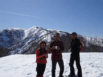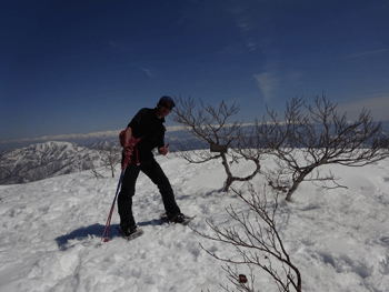 旧スノーバレー利賀7:10=1キロ地点(7:55~8:05)=片折岳(コーヒータイム9:15~35)=金剛堂山(11:00=中金剛(11:30~55)=中金剛(12:25~35)=13:15)=旧スキー場15:05
