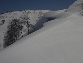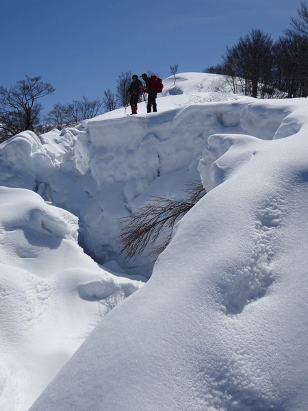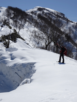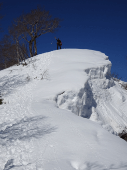 | 尻込みしそうな雪庇の前で・・・ |