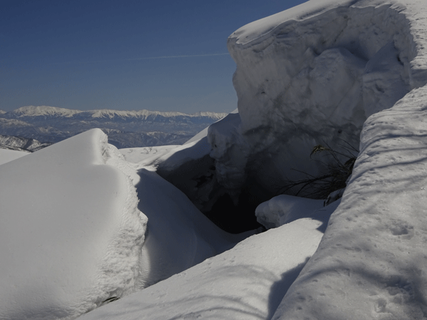 | 雪庇越しに北ア・薬師岳方面を望む。 |
