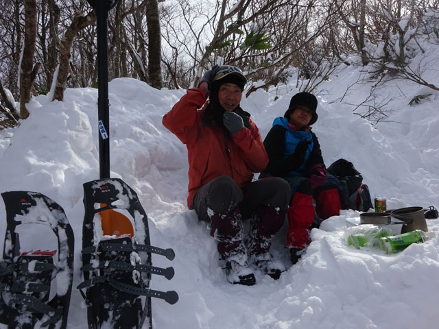 しかし、そこは根性を出して、極寒の中で、震えながら食事を試みた。(引き返してしまう選択もあったが・・) なかなか積み上げられない雪であっても、それなりに壁を造った。しかし、軽いものは吹き飛ばされるし、素手で作業をすれば痛いほどの寒さ・冷たさ。何でここまでかもしれないが、雪上を長く歩きたくて、選んだ山だから仕方がない。