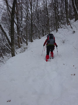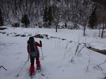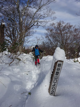 | 除雪最終地点に車をデボし、栃谷登山口に向かう。 |