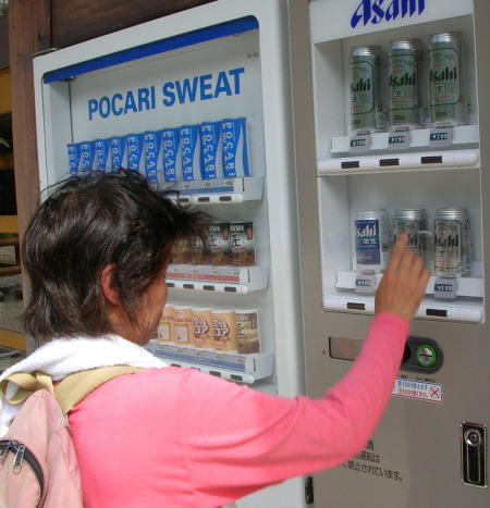 蝶ヶ岳ヒュッテに駆け込んで、自動販売機で500mlのビールを2本買った。(本物のビール)
