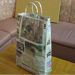 6/14 父方のいとこが、素晴らしいプレゼントを持ってきてくれた。例のクマの写真(写真コンクール)をモチーフにしたエコバッグである。原価0円に近いから、何でも入れられる。例えば山菜を入れ、汚れればそのままゴミ箱へ。でも、今回は、この写真故、放る訳にはいかない。しばらくは、記念の品として、大事にせねばなるまい。