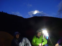 9/5 「ご来光なんていらない。」 とか、「途中で見られればいい。」 などと、いろいろな意見があったが、それでも、いい加減な時間に起きて、軽い食事をして、北ノ俣岳に向かって、テン場を離れたのが午前5時半であった。