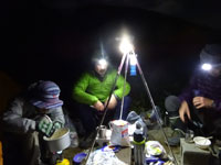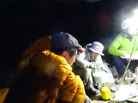 誰がよく喋ったとか、誰がたくさん飲んだとかは、分からないが、とにかく楽しかった。下ネタもあまり出かったが、とにかく、よく喋ったように思う。気温5℃にも負けずにである。終いには、まだ先の 「忘年会に来ないか?」 とまで話が弾んでしまったが、さてさて、どうなる事やら・・・ でも、テントの中に入ってから、寒さを我慢されたに違いない。 (ゴメン! もうちょっと、何かをしてあげれば良かったかも・・)