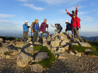 9/4 集合時から、皆はニコニコ顔であった。「いつも食べ切れないから、今回はちょっと減らした。」 と言いながらでも、誰もの荷は大きい。そして、歩きは、遅くない。それに引っ張られるかのように、「山ノ神」曰く、「半月前の日帰りの時より早く三角点に着いた。」 のである。