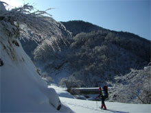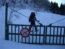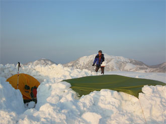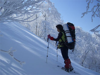 取り付きからすぐのクラストした急登箇所では、山ノ神が登り切れず、荷を代行しなければいけない場面もあったが、全般的には、ブカブカ沈む事もなく、スムーズに歩行出来たように思えた。