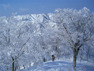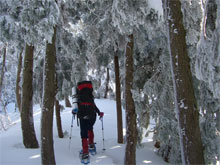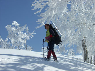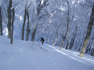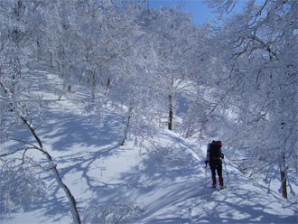 「ゆっくり焦らず、写真を撮りながら行く。」 をテーマにしていただけに、青い空の下で、樹氷の間を縫うように歩くのは、気持ちの良いものであった。