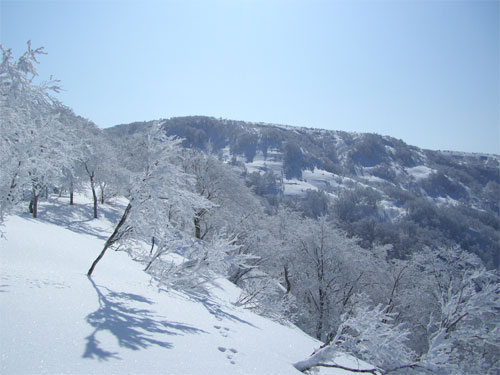 高岡6:30=車デボ地点(8:00~25)=取り付き(9:00~10)=871m(10:05~15)=1175m(11:30~35)=1297m(12:10~30)=1379m(12:55~13:05)=小白木峰頂上13:30