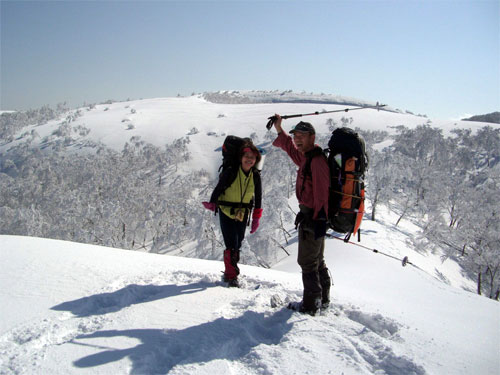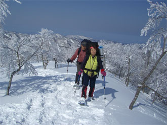 お天気は良好! 山ノ神には、不安と期待が入り交じった出発になったが、15キロの荷を担いだ割には、スムーズな歩きであった。25キロの荷を担いで、その後を追う私の方が、余計に沈むので結構厄介であった。