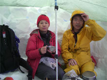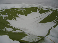 | 朝方からの降雪によるもの・・ | 撤収準備を開始。 | 朝食を採りながら待機! |