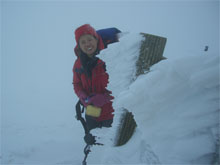 | 視界が利かない中、ようやく山頂近くの祠に辿り着いた。 |