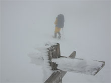 | 強風が吹き荒れ、寒いだけの山頂。 | 白木小屋へのルートを模索! | 不安がいっぱいの「山ノ神」 |